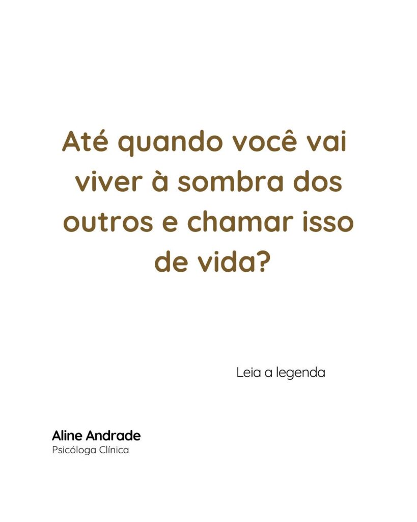 A cada vez que você se cala, que aceita menos do que merece ou que se acomoda no papel de figurante, reforça esse looping.É como se a sua história estivesse sempre nas mãos de alguém, menos nas suas. Você não precisa continuar repetindo esse roteiro. Mudar o movimento é possível, mas exige decisão. O primeiro passo é reconhecer que não é “o outro” que dita suas escolhas, é você. E se, em vez de continuar se adaptando à vida dos outros, você começasse a escrever a sua? Aline AndradePsicóloga Clínica