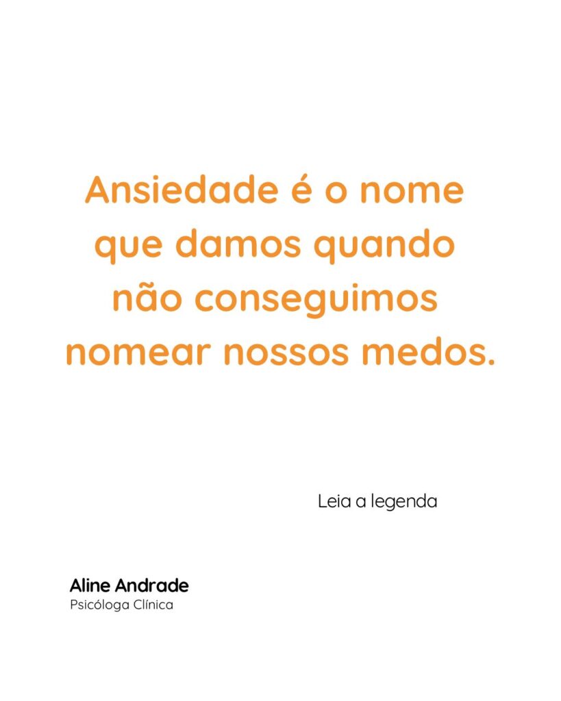 Crescemos ouvindo que medo é fraqueza. Então, em vez de dizer:“tenho medo de falhar”,“tenho medo de perder alguém”,“tenho medo de não ser suficiente”,“tenho medo de errar”,“tenho medo de não ser perfeito”,“tenho medo de não ter sucesso”,aprendemos a dizer apenas: “estou ansioso”. É mais aceitável falar de ansiedade do que admitir o quanto o medo nos atravessa. Mas a ansiedade nada mais é do que esse medo intensificado, desorganizado, que busca saída no corpo e nos pensamentos. Pense em quem evita responder mensagens porque teme decepcionar. Ou em quem não consegue dormir antes de uma reunião porque teme não corresponder às expectativas. O que se apresenta como ansiedade, na verdade, é medo não reconhecido, escondido atrás de uma palavra genérica. Quando não damos nome ao que sentimos, ficamos reféns de uma sensação difusa e sem rosto. Mas quando ousamos dizer nossos medos em voz alta, abrimos espaço para compreender, acolher e ressignificar. A psicoterapia ajuda justamente nesse processo: transformar a ansiedade em algo nomeável, em linguagem, em consciência. Só assim o que hoje paralisa pode se tornar uma possibilidade de movimento. Aline Andrade Psicóloga Clínica