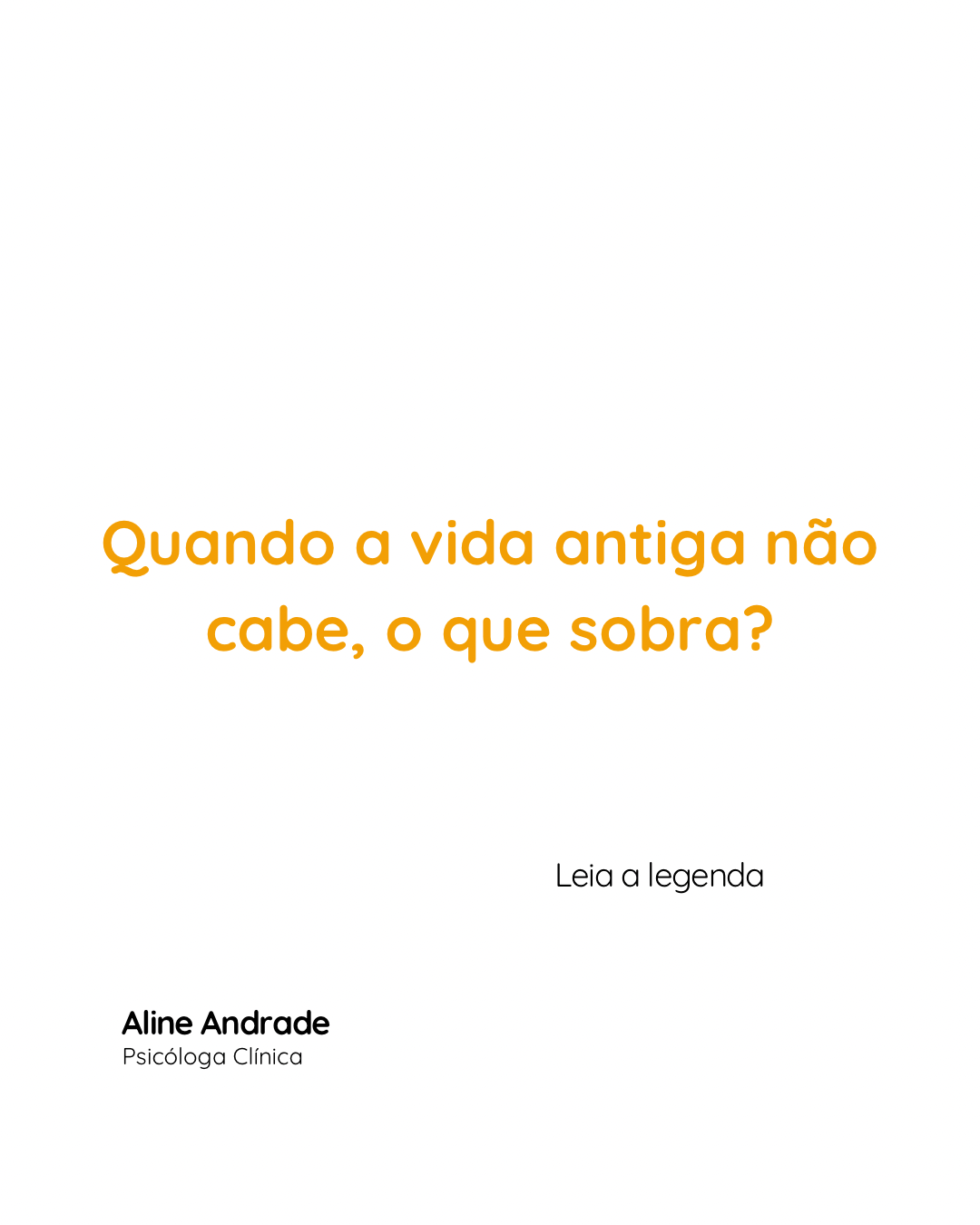 Você acorda e veste o uniforme de sempre: o mesmo crachá, a mesma rotina, a mesma maneira de responder “tudo bem” quando alguém pergunta. Só que, no fundo, não está mais tudo bem. O trabalho que antes dava orgulho agora pesa como um fardo. A relação que já foi lugar de aconchego hoje parece um contrato burocrático. Até a casa, com os móveis que você mesmo escolheu, já não transmite lar. É como calçar um sapato que foi feito para você anos atrás e agora aperta. E aqui vem a parte incômoda: não é o mundo que mudou tanto assim, foi você. Os sentidos que davam sustentação se esgotaram. E quando isso acontece, não há manual que segure. Você se vê diante daquilo que Sartre já chamava de condenação: ter que escolher, reinventar, assumir a liberdade de criar-se de novo. O vazio que aparece não é uma falha sua, é o anúncio de que a vida antiga morreu. E a pergunta é direta: você vai continuar tentando caber em algo que já não comporta quem você se tornou, ou vai aceitar o risco de nascer outra vez? Aline AndradePsicóloga Clínica